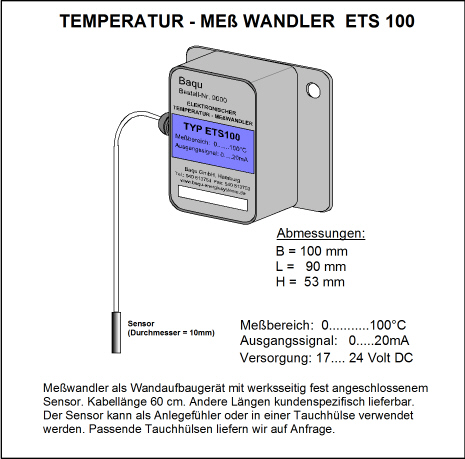 9000...........Meßbereich 0....100 °C................(Typ..ETS 100).............................249,00